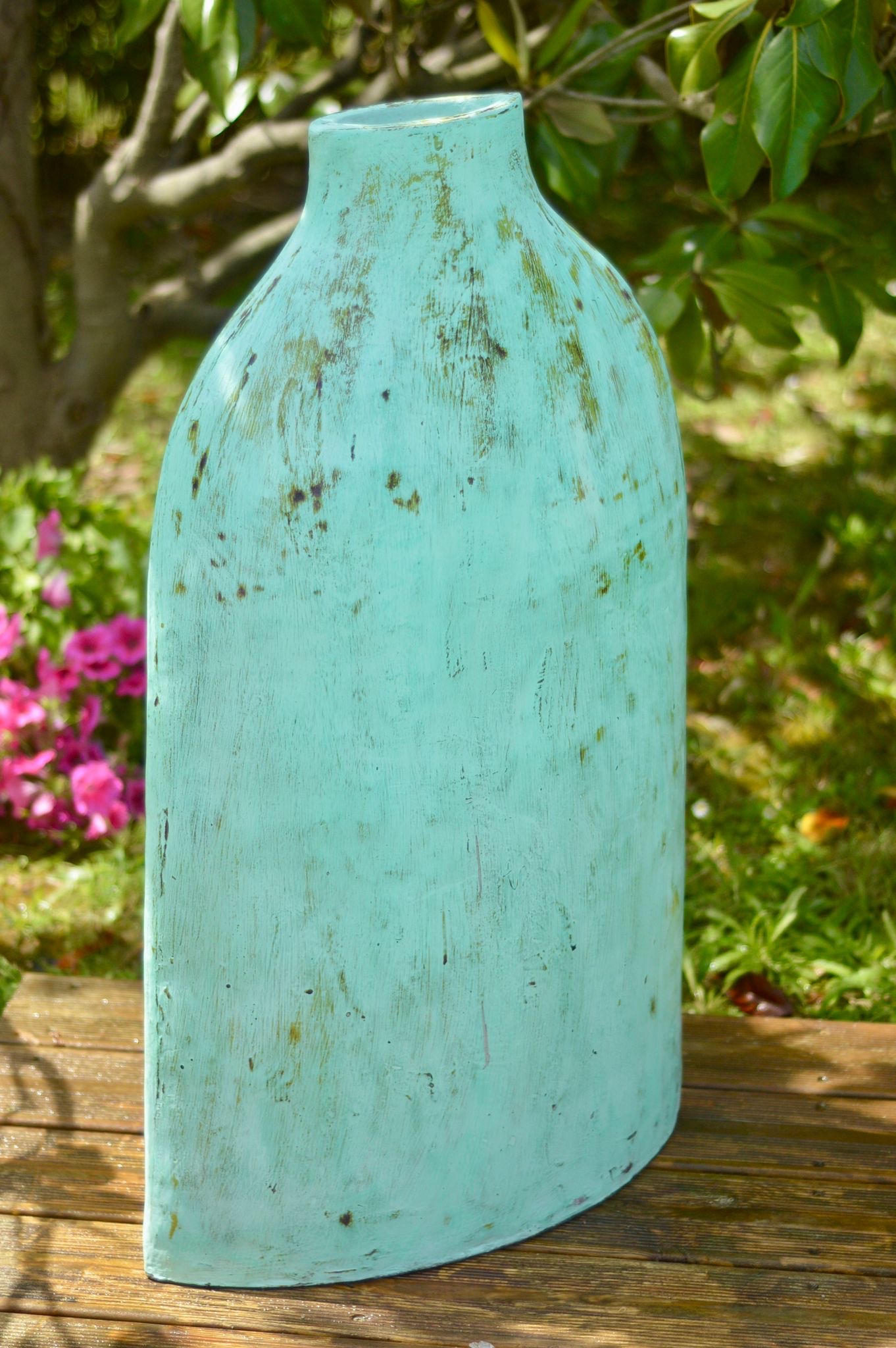 La Terracotta et la résine qui composent 100% de ces jarres a été travaillée ensuite pour faire un effet pierre lisse « béton ciré » ou en peinture effet brulé avec un chalumeau, ce qui apporte un côté chic à ces jarres et qui décorera à merveille votre véranda, votre terrasse, votre abord de piscine ou même votre intérieur. En effet, ce modèle peut être autant placé en intérieur qu’en extérieur (sauf pour les modèles Vert brulé).