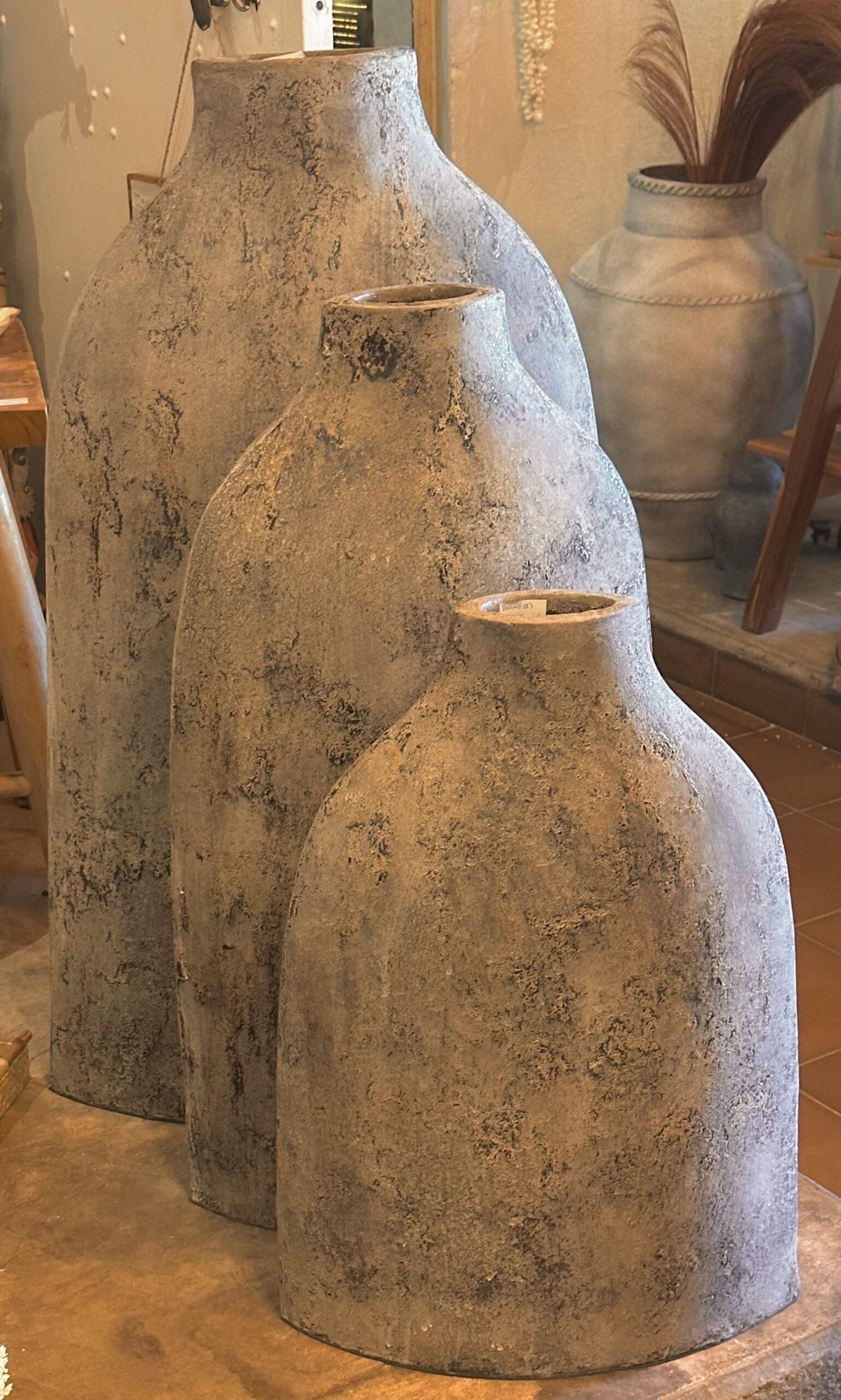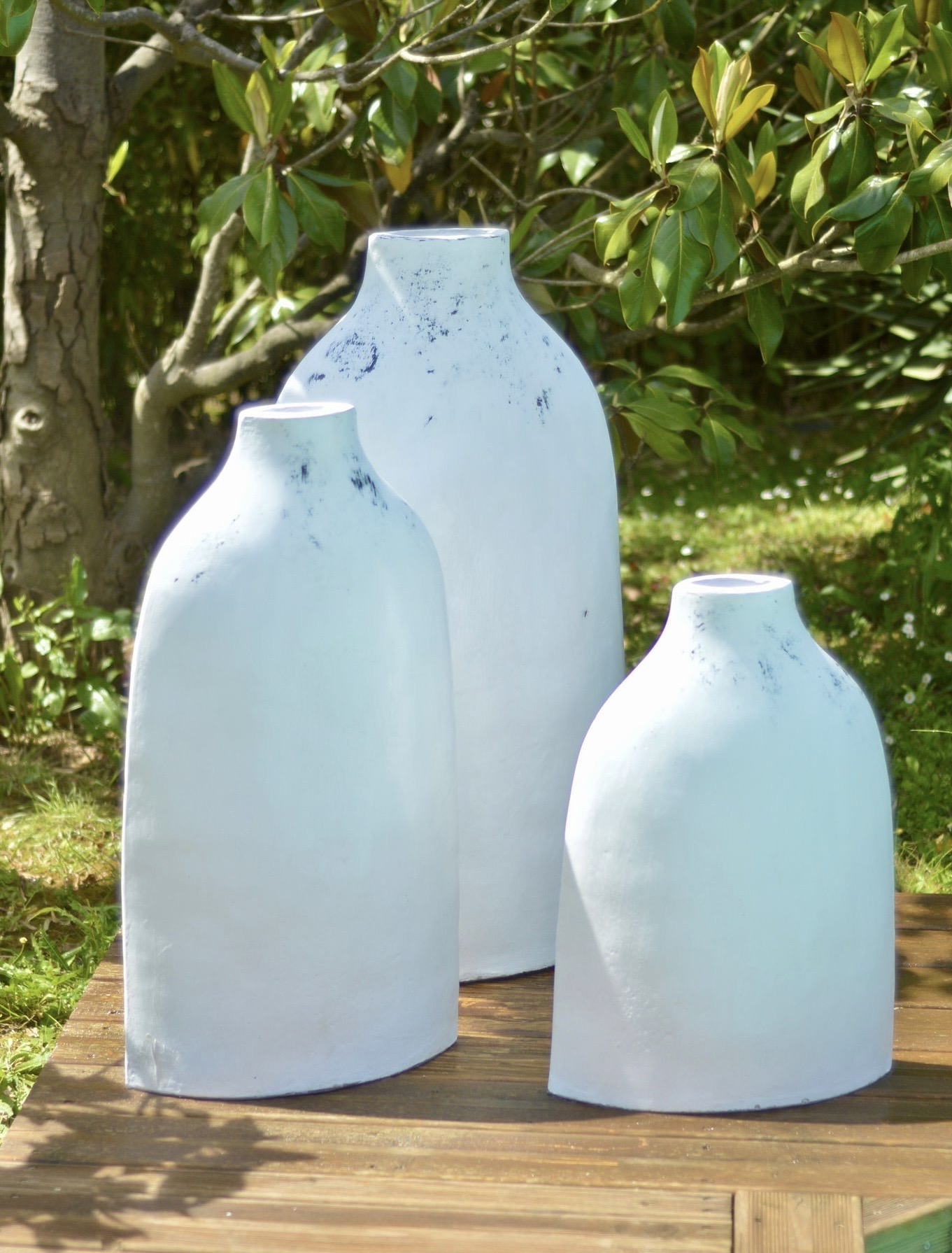 Le modèle DIVINE est un trio délicat de poterie en forme de bouteilles plates disponible en divers coloris.